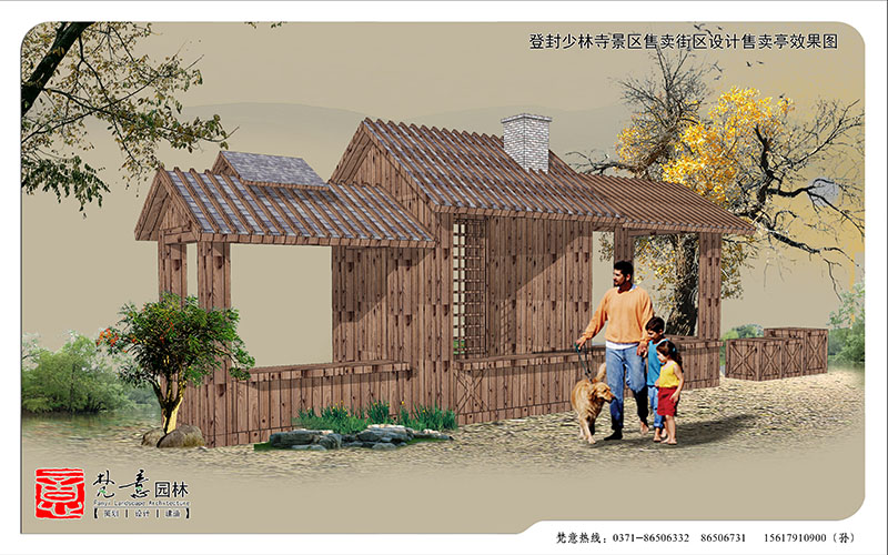 對整個景區(qū)里的公共設施、綠化、店面、景觀小品等一系列的設計,設計了一個具有少林寺地方特色的售賣街區(qū),使之成為一條兼具地方特色、文化內涵的街區(qū),體現了書香氣息、古樸寧靜、深遠的歷史文化內涵。